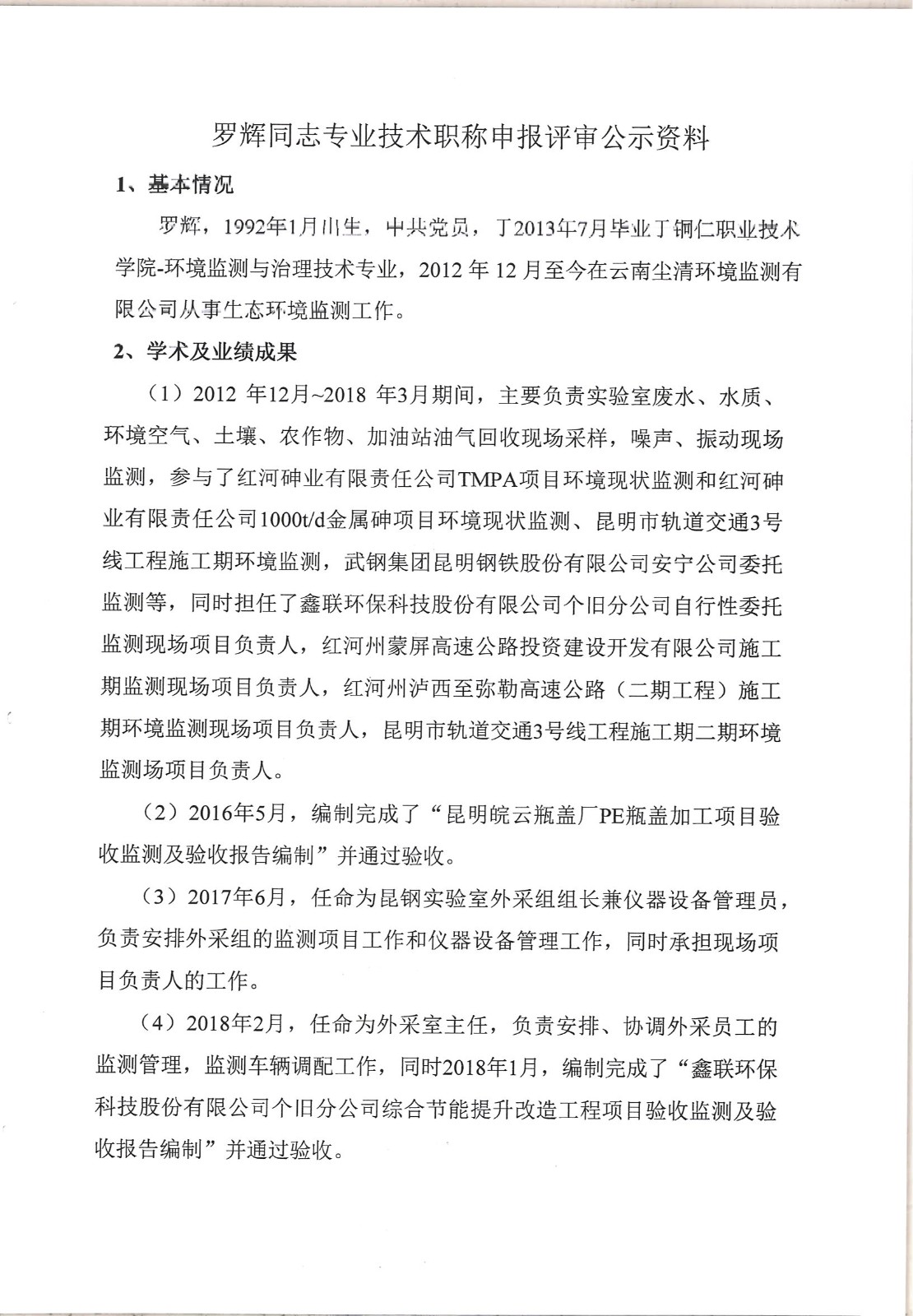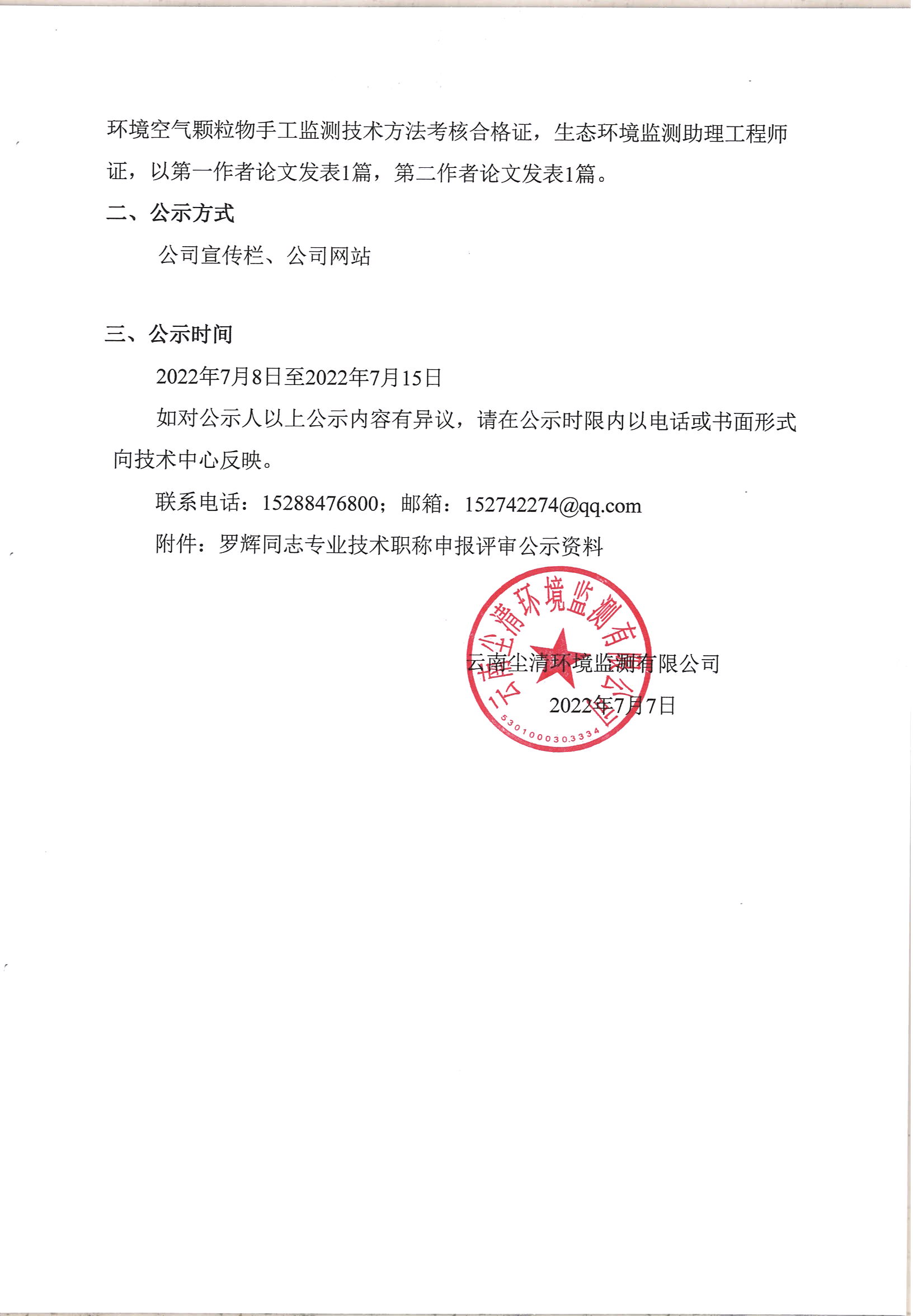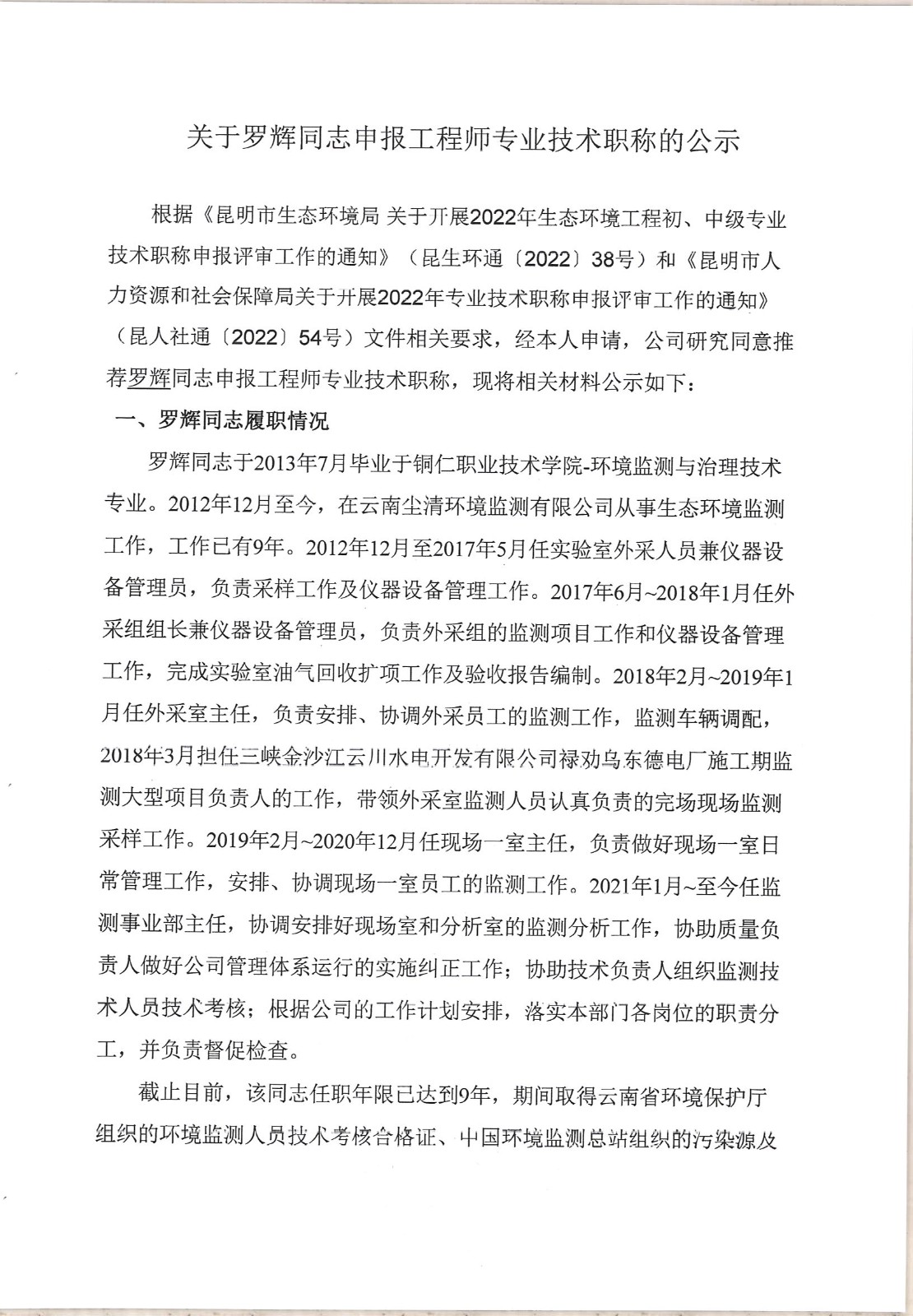 關于羅輝同志申報工程師專業技術職稱的公示(公示時間:2022年7月8日至7月15日)