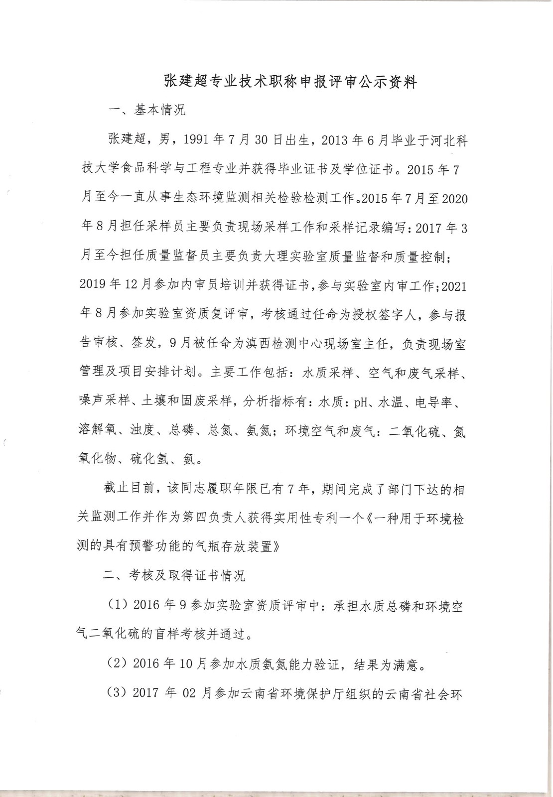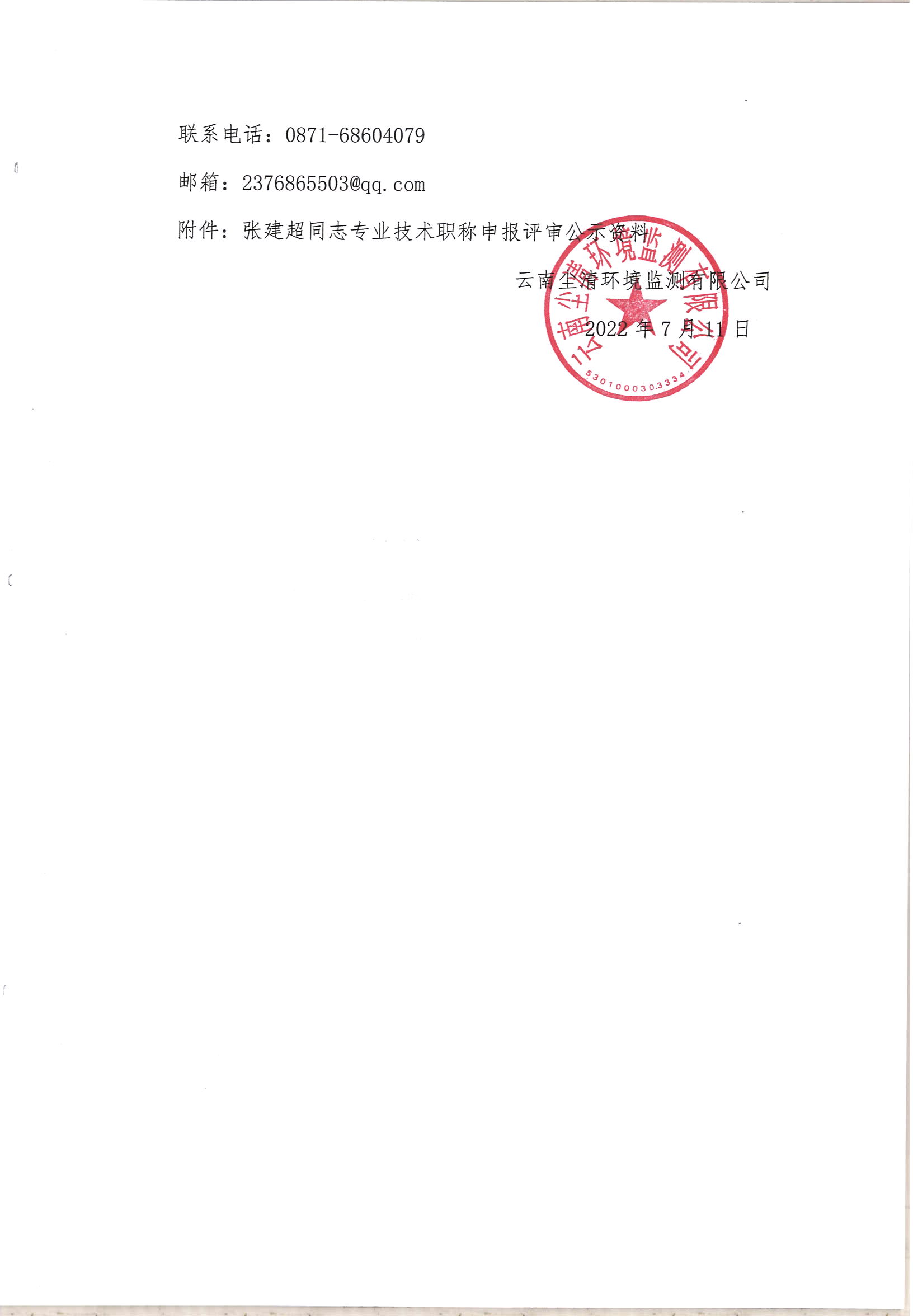 關于張建超同志申報工程師專業(yè)技術職稱的公示(公示時間:2022年7月11日至7月17日)