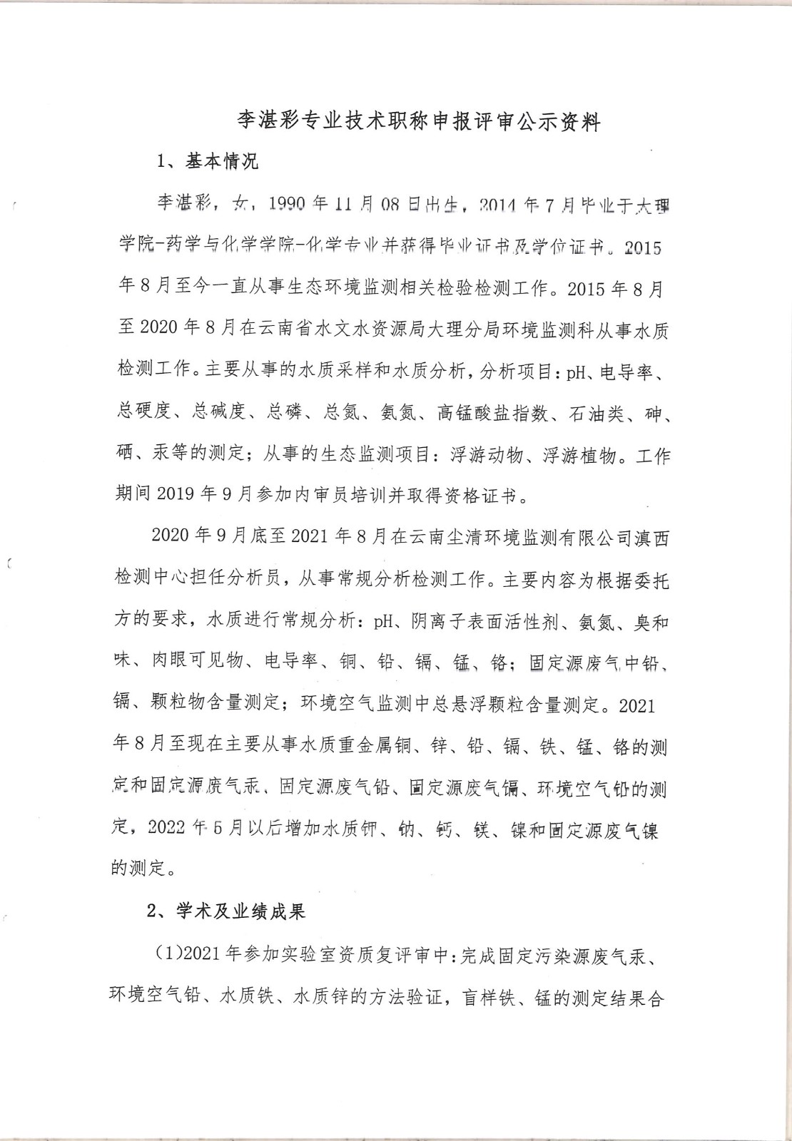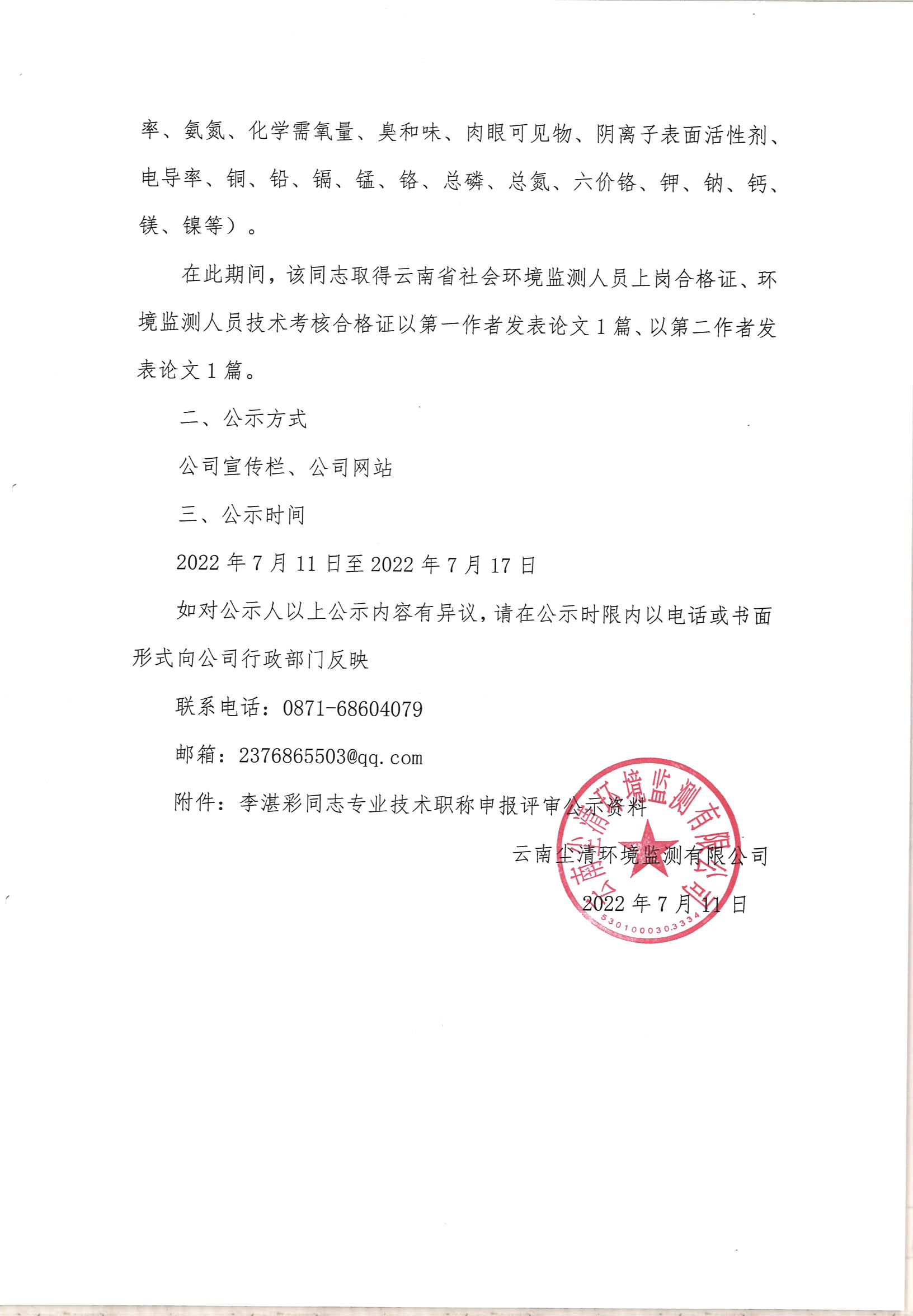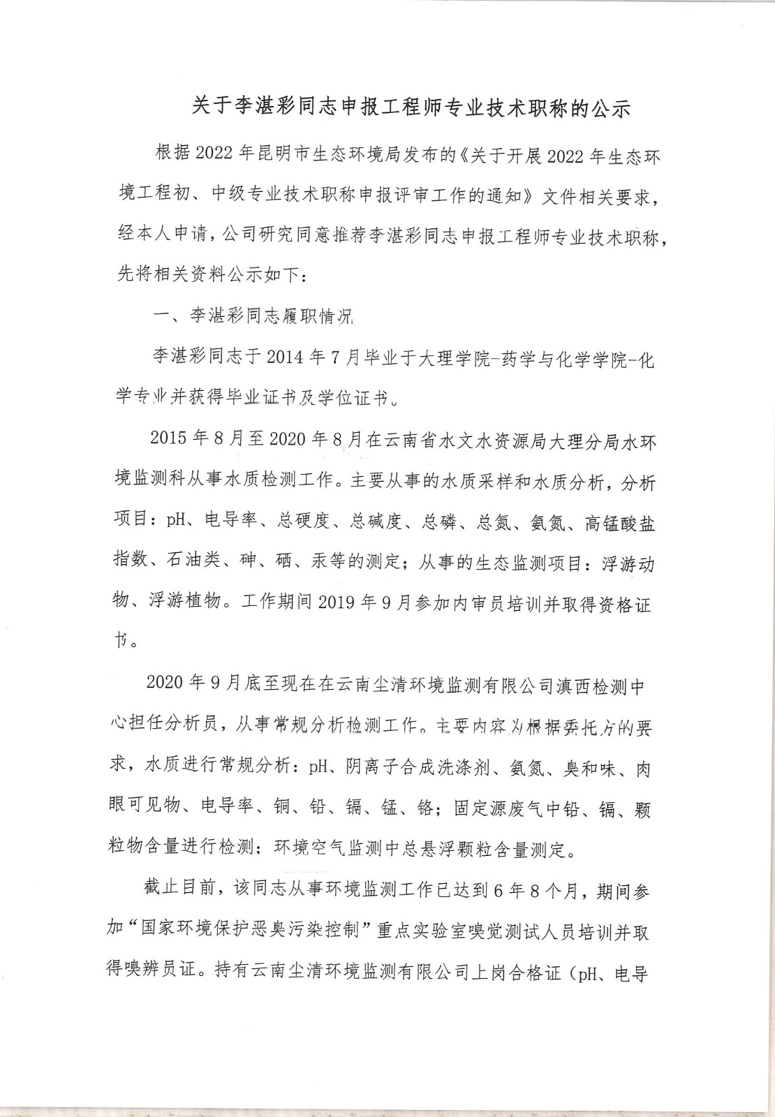 關于李湛彩同志申報工程師專業(yè)技術職稱的公示(公示時間:2022年7月11日至7月17日)
