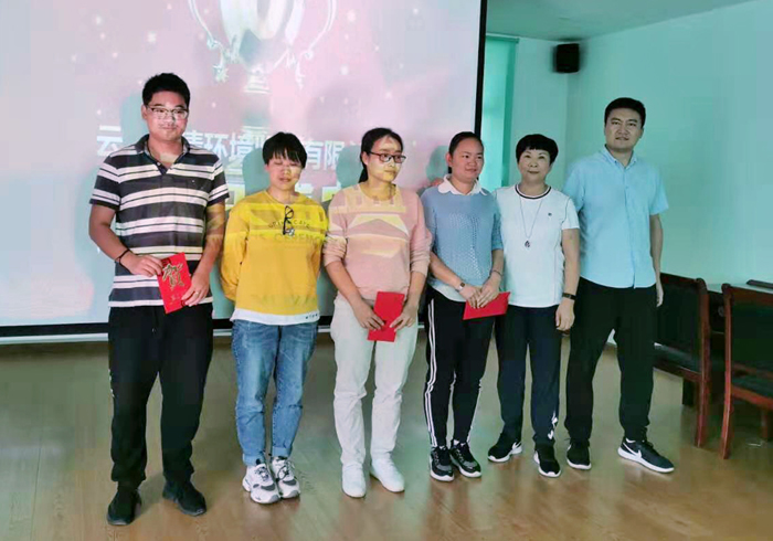 2019年8月24日,公司在塵清環境監測有限公司現場舉行頒獎會,對在“第二屆全國生態環境監測專業技術人員大比武活動”云南省大比武選拔賽中,代表塵清公司參賽并獲得個人第18名的楊慧勤及參加團隊比賽的劉明靈、付艷芳、樊志龍等三名隊員,進行頒獎鼓勵。